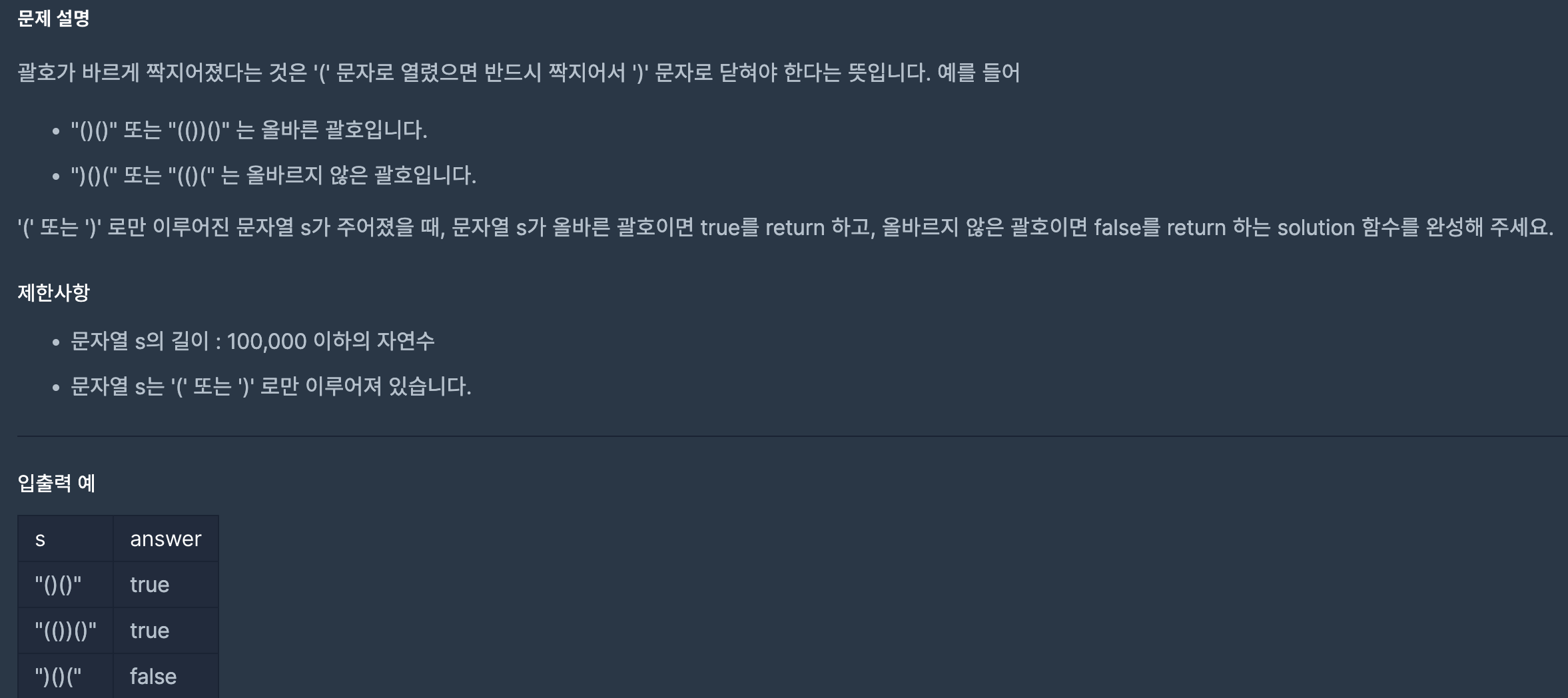 return stack.isEmpty(); // 스택이 비어있으면 ture : 괄호 짝이 맞다
