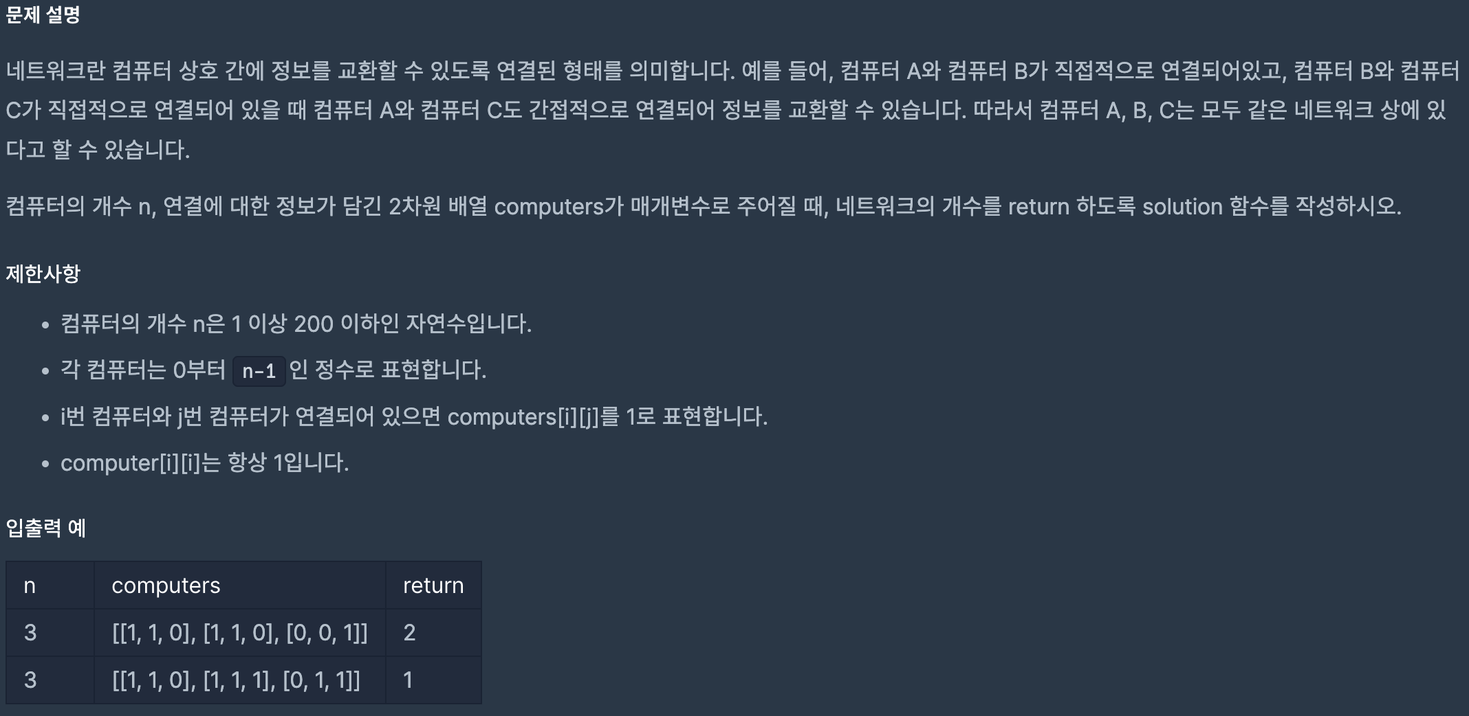 dfs(computers, visited, i); // DFS로 연결된 컴퓨터 모두 방문