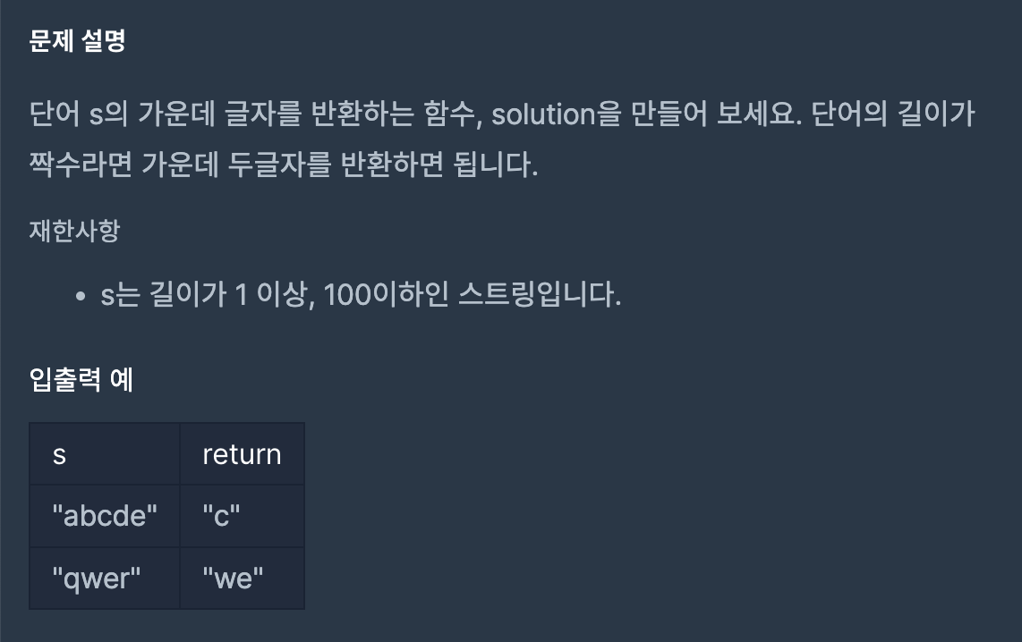 if(s.length() % 2 == 0) answer += s.charAt(mid - 1) + "" + s.charAt(mid);